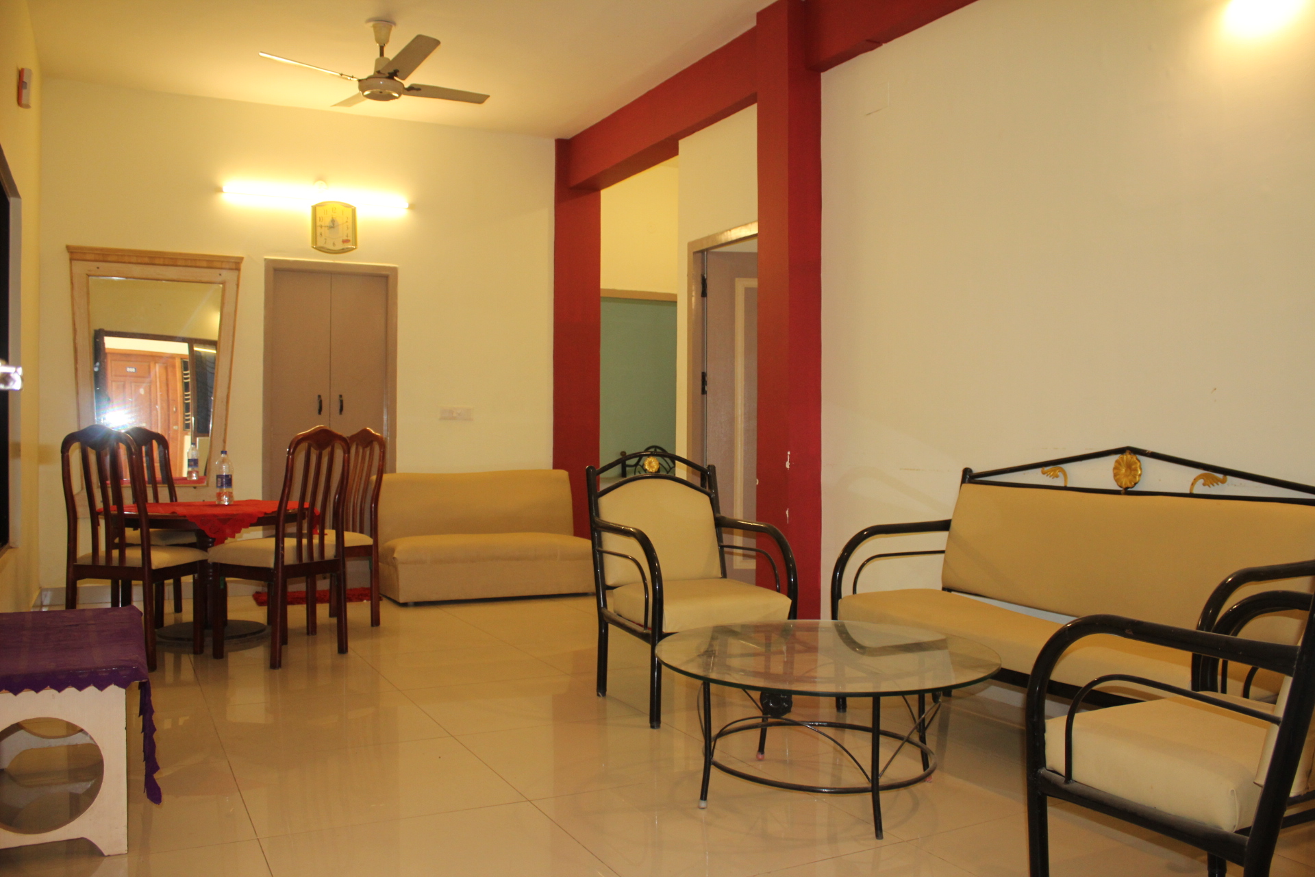 3BHK Size between 900 to 1100 square feet or 85 to 100 square meter.r. It has t Three Double Bedroom, Triple sofa set, Dinning area, TV, a private/shared bathroom with shower.offering everything necessary for a comfortable stay.